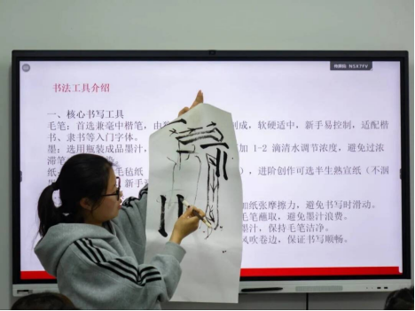 书协成员张玲玲耐心示范握笔运笔,细致讲解起笔收笔要点,手把手纠正姿势,细致指导提笔落墨技巧,带领大家静心练字,感受笔墨韵味,体悟向善初心。
